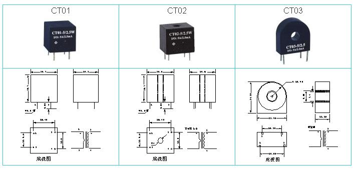 CT03-5/2.5 | 5A/2.5mA | <0.1% | <5' | 0A~20A | ≤800Ω | ||