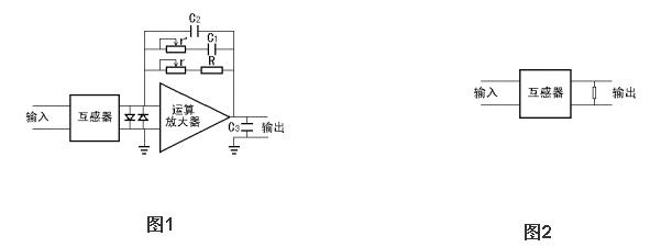 次J如不加運算放大器而直接并聯一個電阻使輸出變換成電壓信號也是可以的,使用電路如圖2所示。前提是電阻要小于800Ω,輸出電壓大2伏,這時仍能得到非線性度優于0.1%的輸出電壓信號。與推薦電路1比較,其影響如下:1.縮小了互感器的動態范圍,2.使相移增大,電阻要求精度優于1%, 溫度系數優于50PPM。
